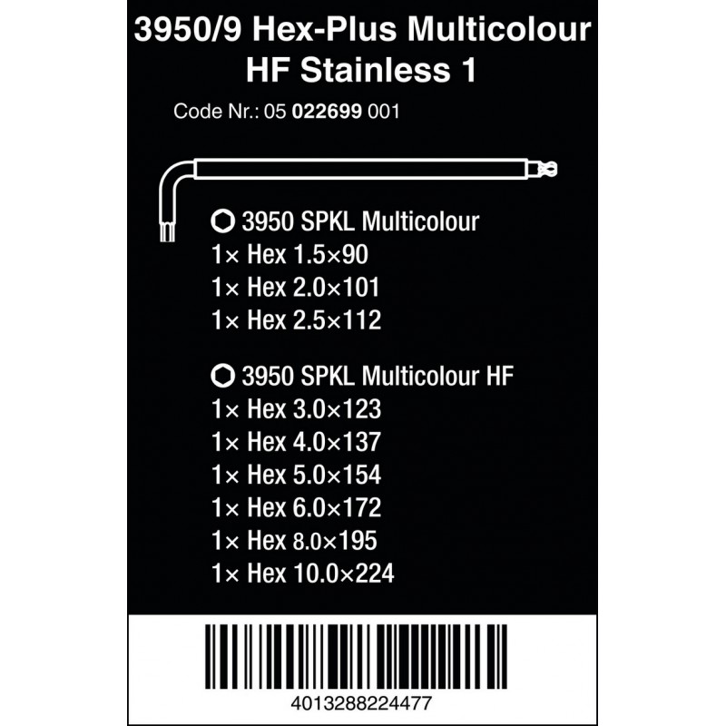 Wera 3950/9 SPKL HF HexPlus Topbaş Renkli Allen Anahtar Seti 05022699001