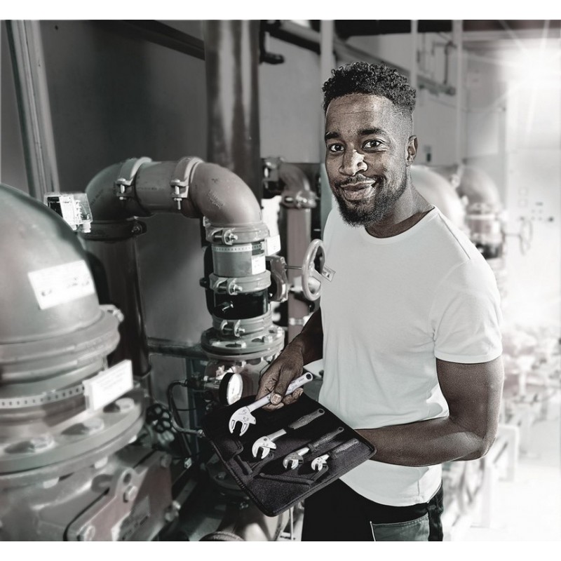 Wera 6004 Joker Cırcırlı Kurbağacık Seti 4 Parça 05020110001 setindeki ayarlanabilir anahtarlar; mümkün olan en geniş uygulama yelpazesine sahip evrensel bir vidalama aletini kullanıcılara sunmaktadır. Wera 6004 Joker Cırcırlı Kurbağacık Seti 4 Parça 05020110001 setindeki ayarlanabilir anahtarlar farklı vida boyutlarına otomatik olarak uyum sağlamaktadır. Wera 6004 Joker ayarlanabilir anahtarlar altıgen cıvataya veya vidaya takarken gerekli boyut otomatik ve sürekli olarak ayarlanır. Entegre kol mekanizması, altıgen vidayı veya cıvatayı çeneler arasında güvenli bir şekilde sıkıştırarak kayma veya hasar riskini önemli ölçüde azaltır. Kola entegre cırcır özelliği, aleti çıkarmadan hızlı ve tutarlı vidalama sağlar. Wera 6004 Joker Cırcırlı Kurbağacık Seti 4 Parça 05020110001 setindeki ayarlanabilir anahtarlar ile 30°'lik bir dönüş açısı elde edilebilmektedir. Tek kollu tasarım, cırcır özelliği ve köşe genişliği prizması ile birlikte dar alanlarda bile çalışmayı mümkün kılar. Kendinden ayarlı ve kavramalı ayarlanabilir Joker 6004 evrensel vidalama aletidir.