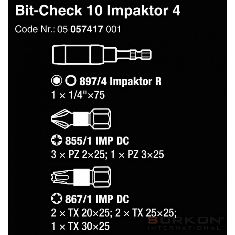 Wera Bits Seti Impaktor 4 Bit-Check 10 05057417001 İçindekiler