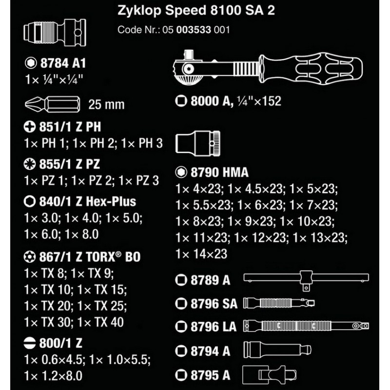 - Wera 8100 SA2 Zyklop Cırcır Seti