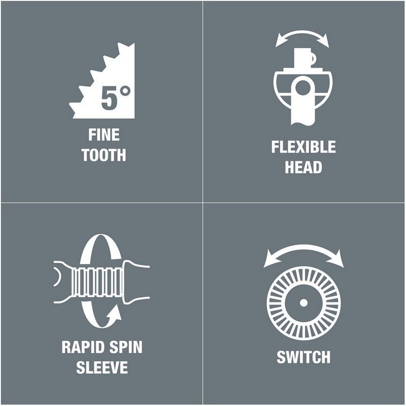 - Çok kapalı alanlarda bile kolay iş için yumuşak, ergonomik sap.