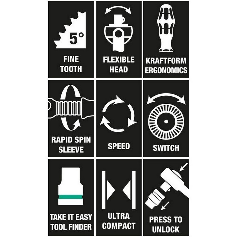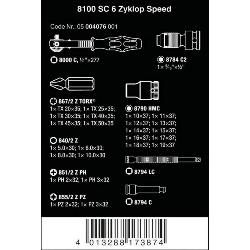 Wera 8100 SC6 Zyklop Cırcır 1/2" Lokma Bits Seti 05004076001