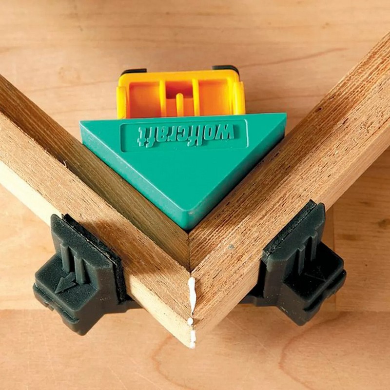 Bu köşe gergileri ile rafları, resim çerçevelerini ve mobilya parçalarını sabitlemek ve sıkıştırmak için optimum biçimde hazırlıklı hale gelirsiniz. Sete 10 - 22 mm tahta kalınlıkları için 2 adet köşe gergisi dahildir. Bunlar tek elle kolayca takılıp çıkarılabilir. Yay mekanizması sayesinde tahta kalınlığına göre otomatik olarak ayarlanırlar. Farklı kalınlıktaki tahtalar da sorunsuz bir şekilde bir arada sıkıştırılabilir. Sıkıştırma yüzeyleri, iş parçasını basınç izi bırakmadan sıkıca sabitleyen, yumuşak ve kaymaz bir temas yüzeyine sahiptir. 90° açıyla vidalama veya tutkallama için 2 adet pratik sabitleme yardımcısı.