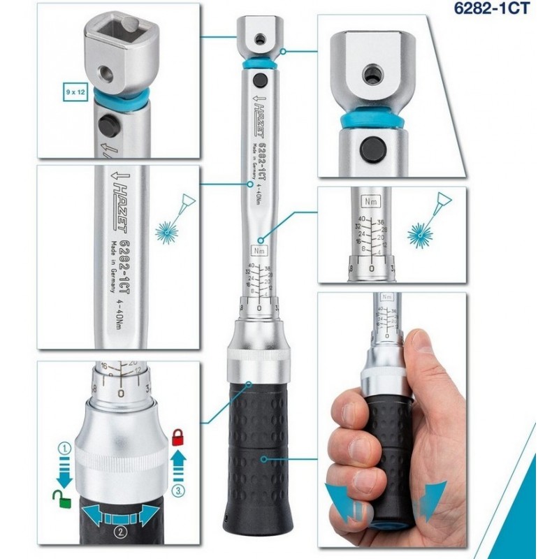 Hazet 6282-1CT 4-40Nm 9X12mm Değişken Uçlu Torkmetre ±%2